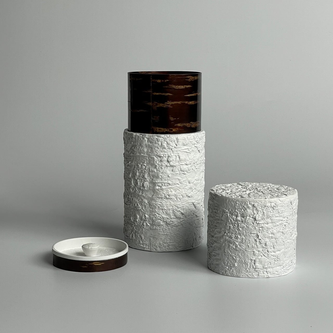 【樺(山桜樹皮)の質感の魅力を引き出すモノトーン茶筒】