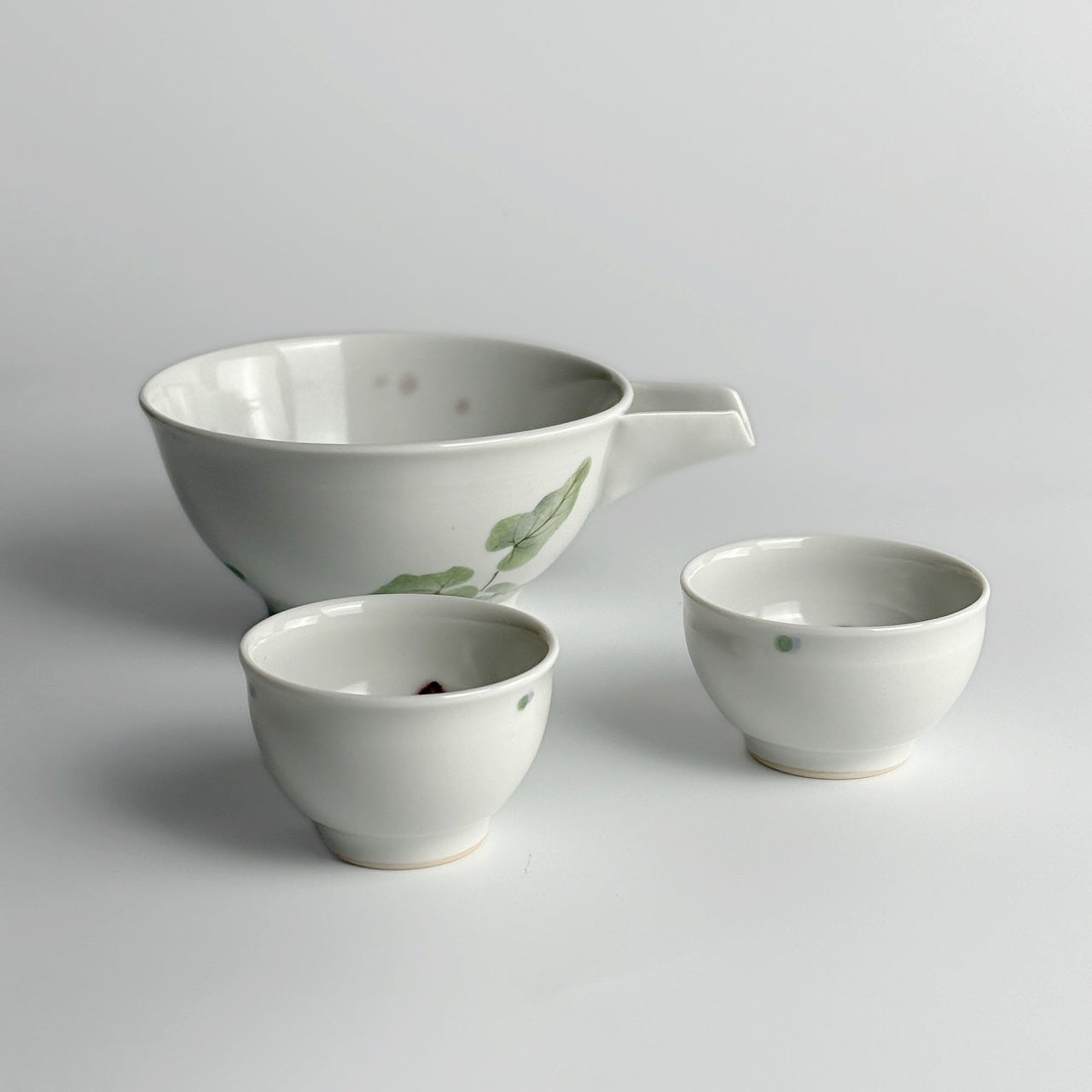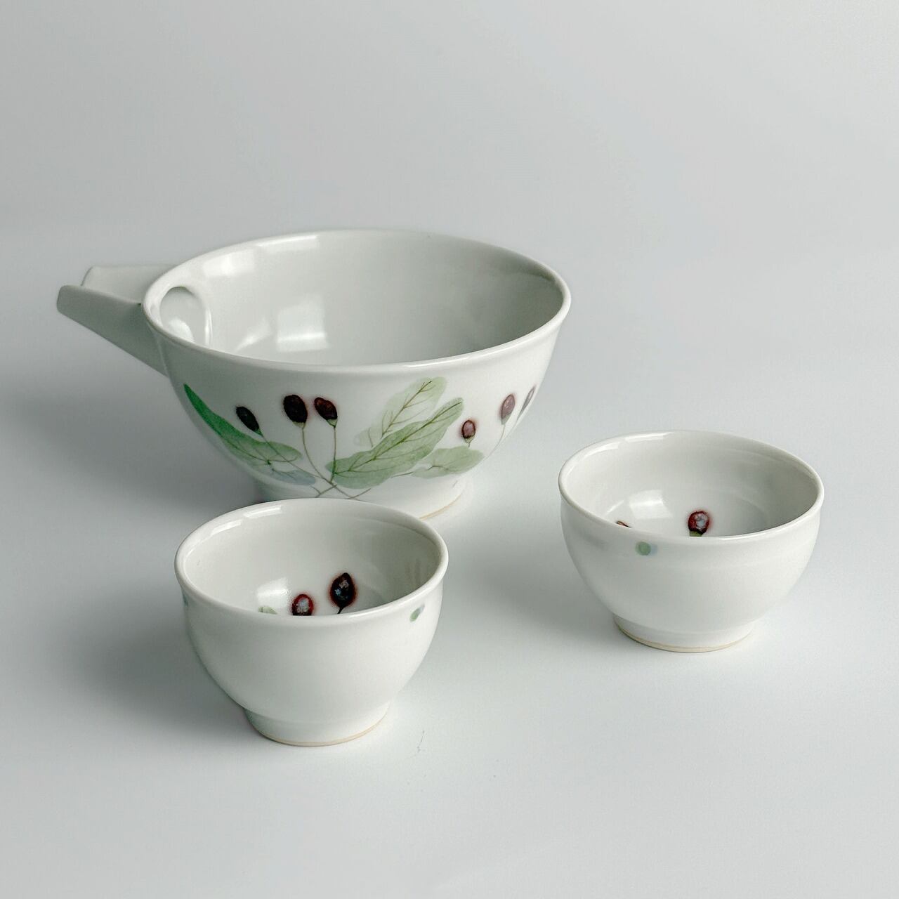 「酒器組み物 ワレモコウ」は、女性に人気の可憐なワレモコウをモチーフにした美しいデザインが特徴です。赤を使いながらも優しい色合いがお酒を引き立て、テーブルの上に華やかさを添えます。酒器として以外にも幅広く使え絵柄を見ながら楽しい話も進みそうですね。